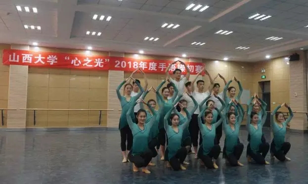 ??本次大赛主题为“手舞心灵,与爱同行”,山西大学26个院系的同学们各自组成了20余人的队伍,以“爱”为主题,进行了近一个月的训练。各个院系表演形式多样,团队凝聚力强,用肢体语言传递他们所理解的爱的含义。其中,音乐学院表现稳定,以优美协调而训练有素的舞姿征服了评委们的心,不出意料全票通过。新闻学院的《年轻的战场》让人热血沸腾,感动不已,也顺利晋级。其他各个院系也各有特色,从选曲到舞蹈都创意十足。